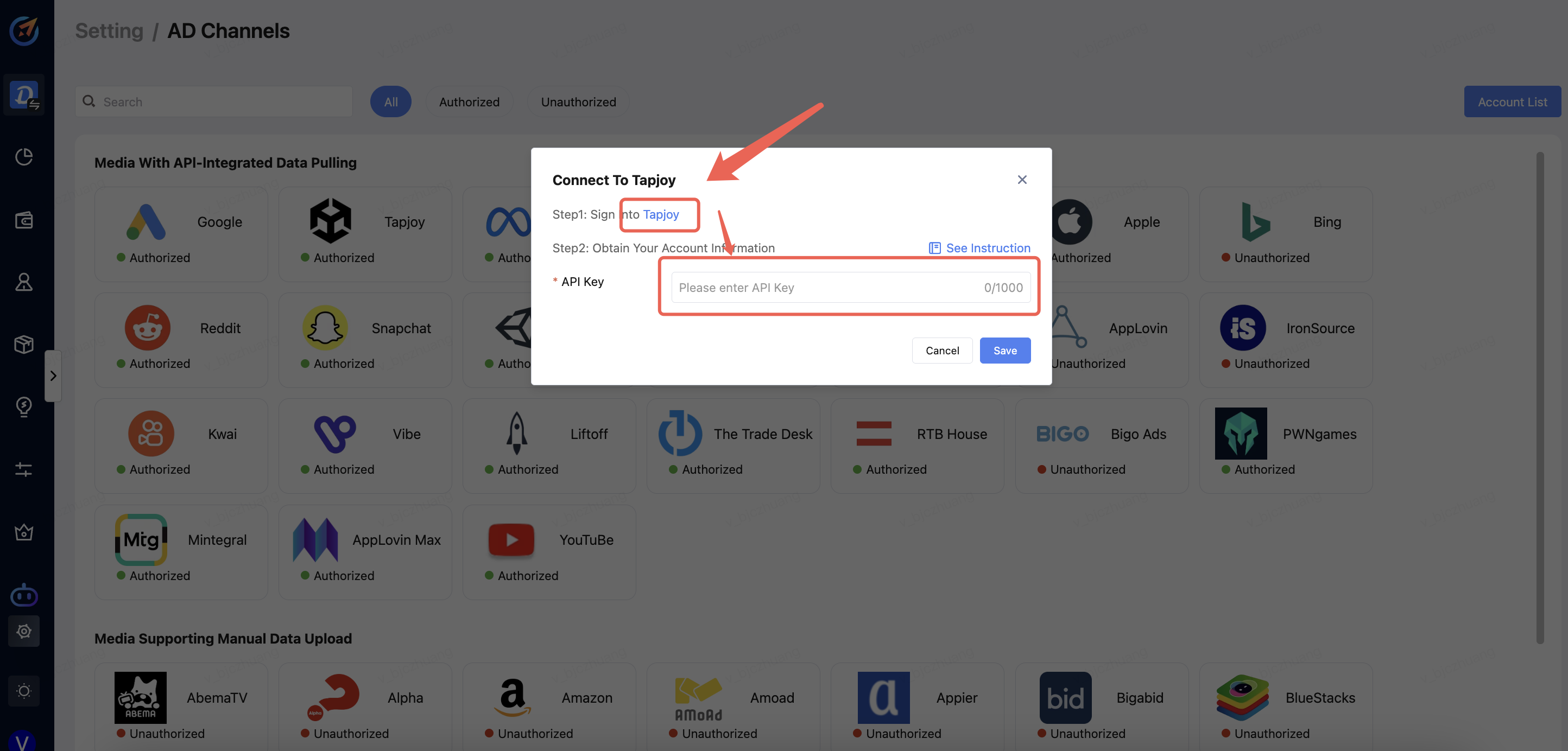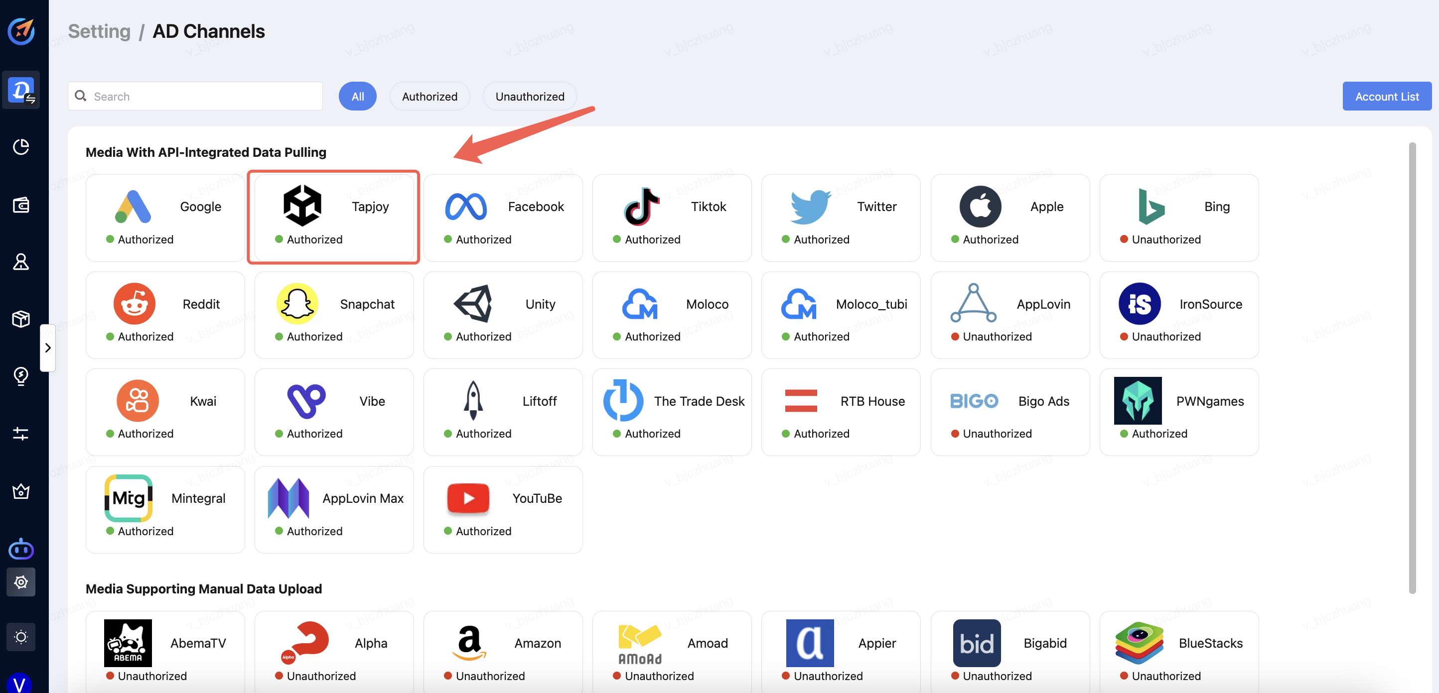 Click "Setting" -->"AD Channels" --> "Select the Media".