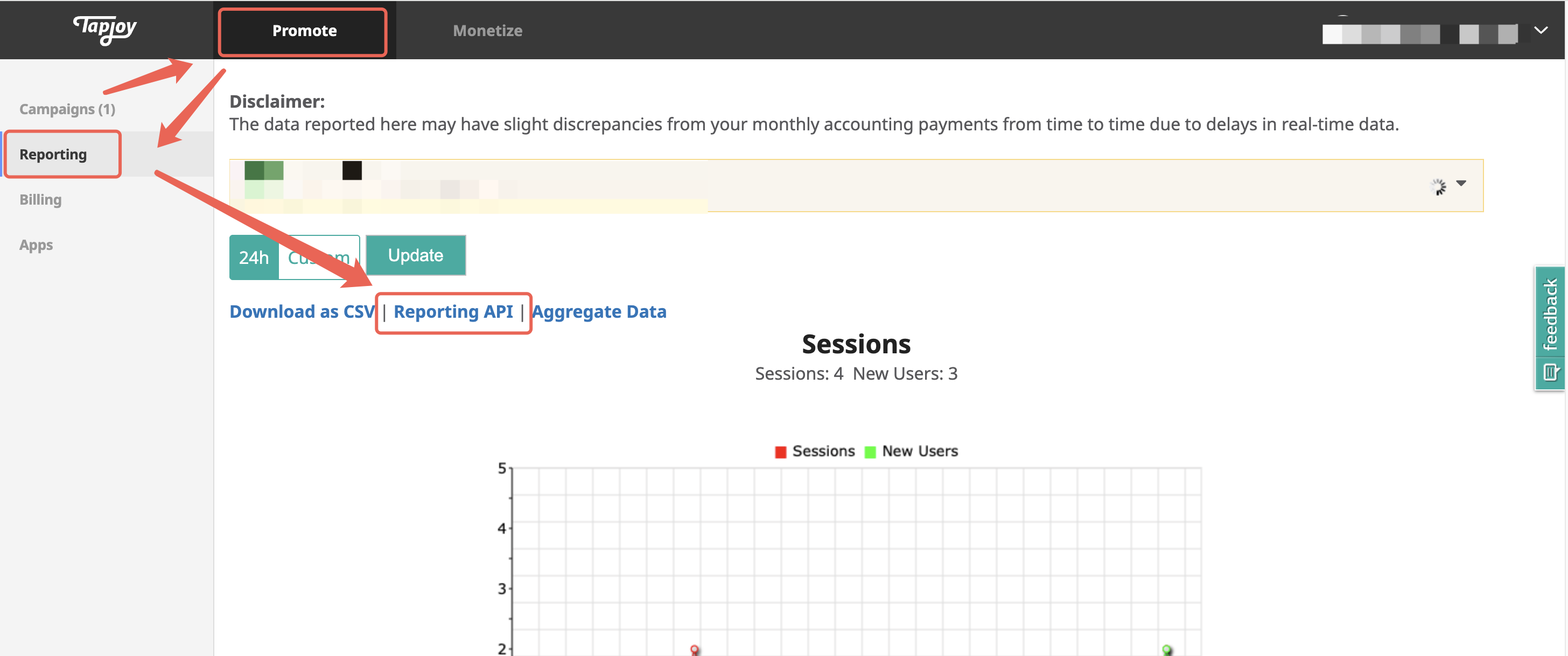 a. Click "Reporting""-->"Reporting API".