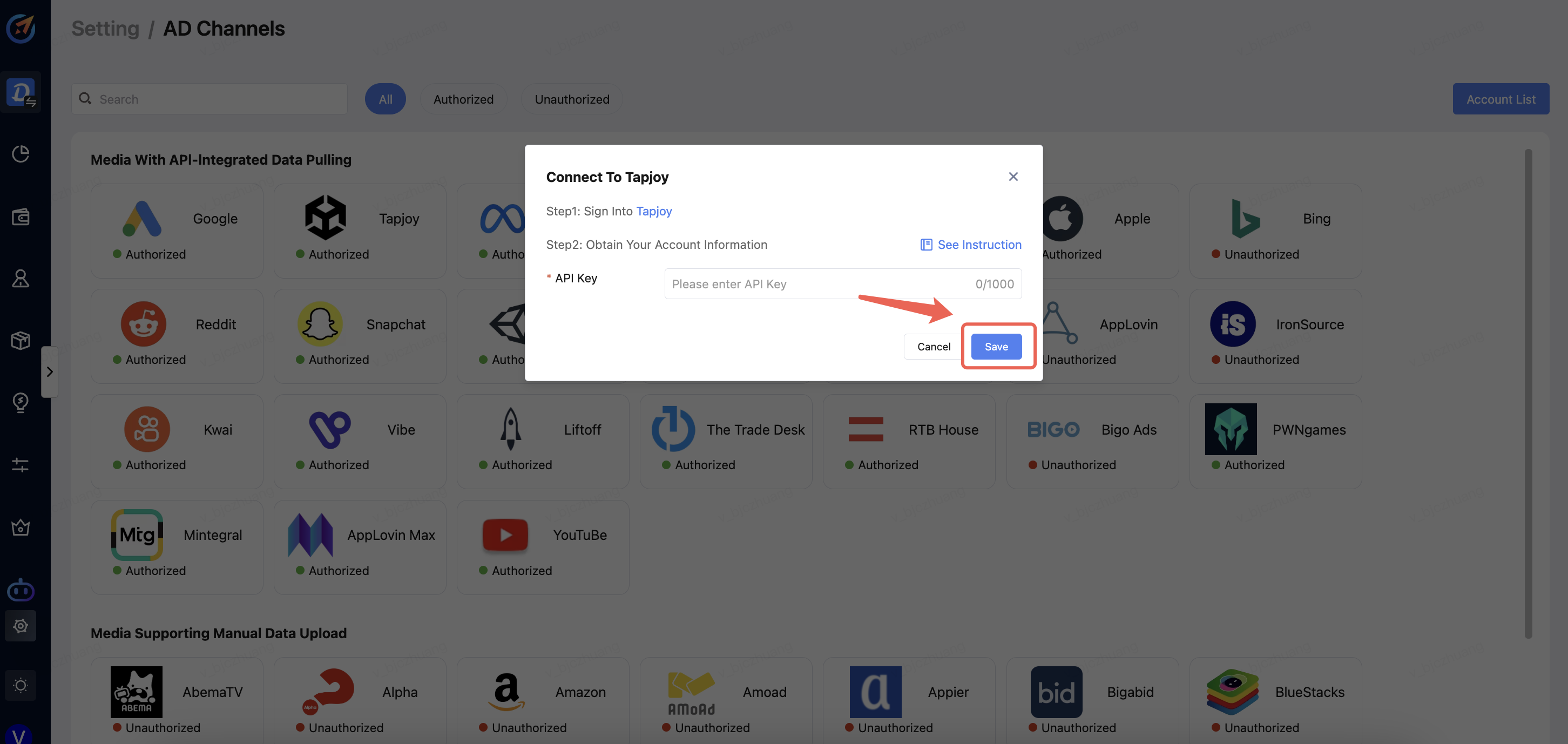 Enter the API key,Finally, click Save.